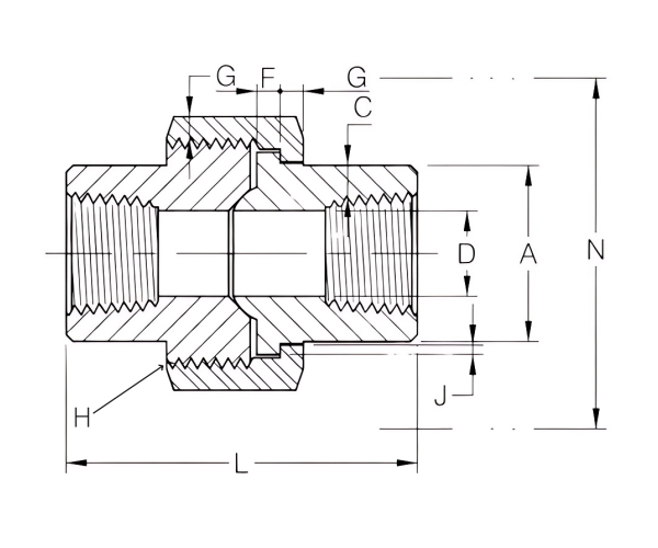 | NPS | MỘT | C | D (Max) | D (tối thiểu) | F | G | H (Thrds/in) | J (phút) | L | N |