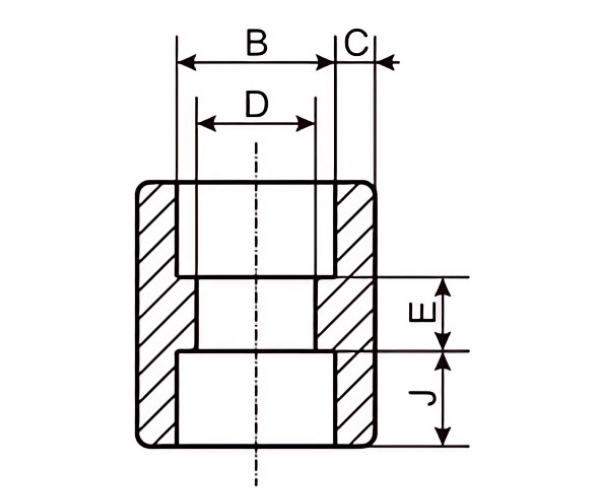 | Đường kính danh nghĩa | B | D | C | J | E | ||||||||