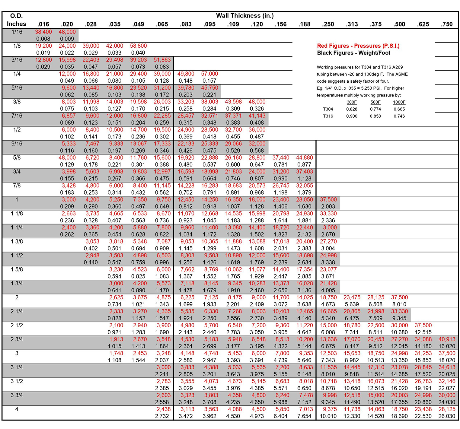Ống không gỉ áp lực bùng nổ lý thuyết và trọng lượng